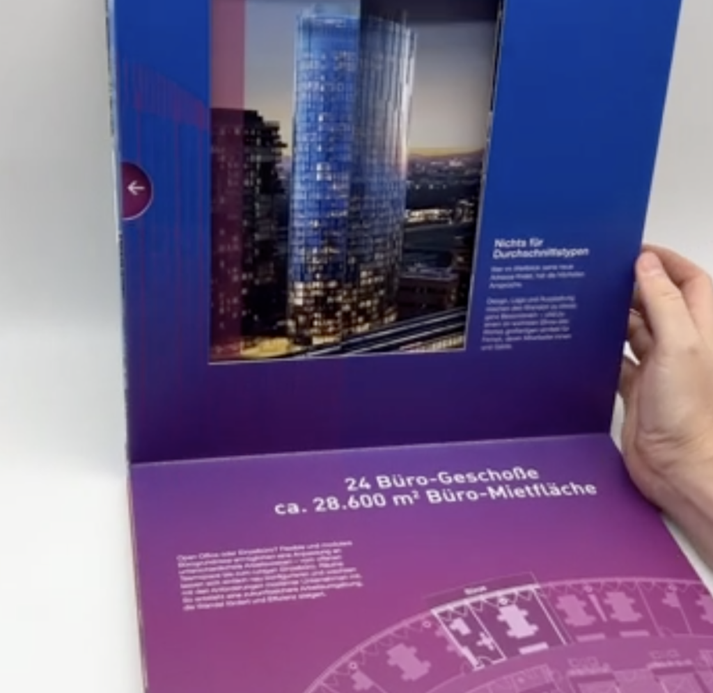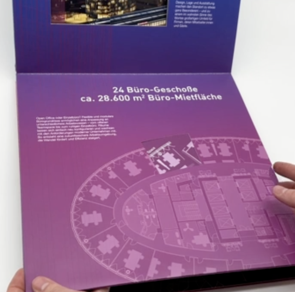 Pop-up-Mappen eignen sich besonders für Branchen wie Bau, Architektur, Immobilien, Technik, Wissenschaft oder Luxusgüter. Wo Visualisierung eine große Rolle spielt, schaffen dreidimensionale Papiermechaniken eine Klarheit, die klassische Broschüren nicht erreichen. Gleichzeitig vermitteln sie Wertigkeit und Innovationskraft – zwei Eigenschaften, die Kunden und Investoren unmittelbar mit der Marke verbinden.
