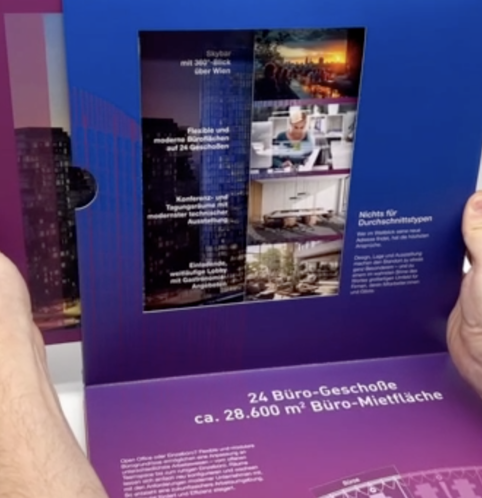 Die Investorenmappe wurde ein voller Erfolg. Die Pop-up-Elemente sorgten beim Öffnen für ein sofortiges „Aha-Erlebnis“ und präsentierten STRABAG-Projekte auf eine Art, die sich deutlich von klassischen Präsentationsunterlagen abhebt.